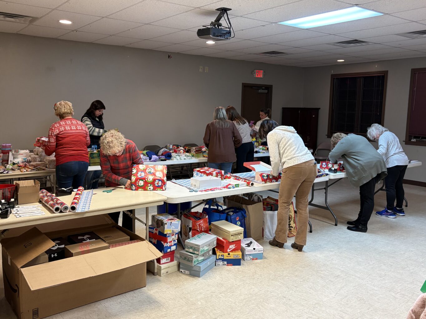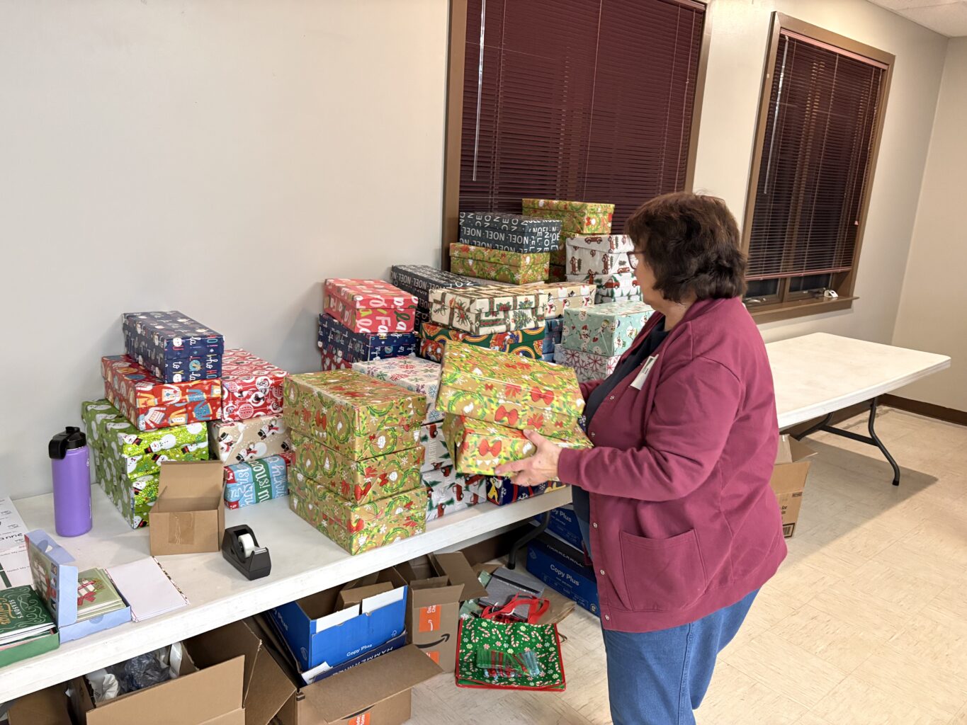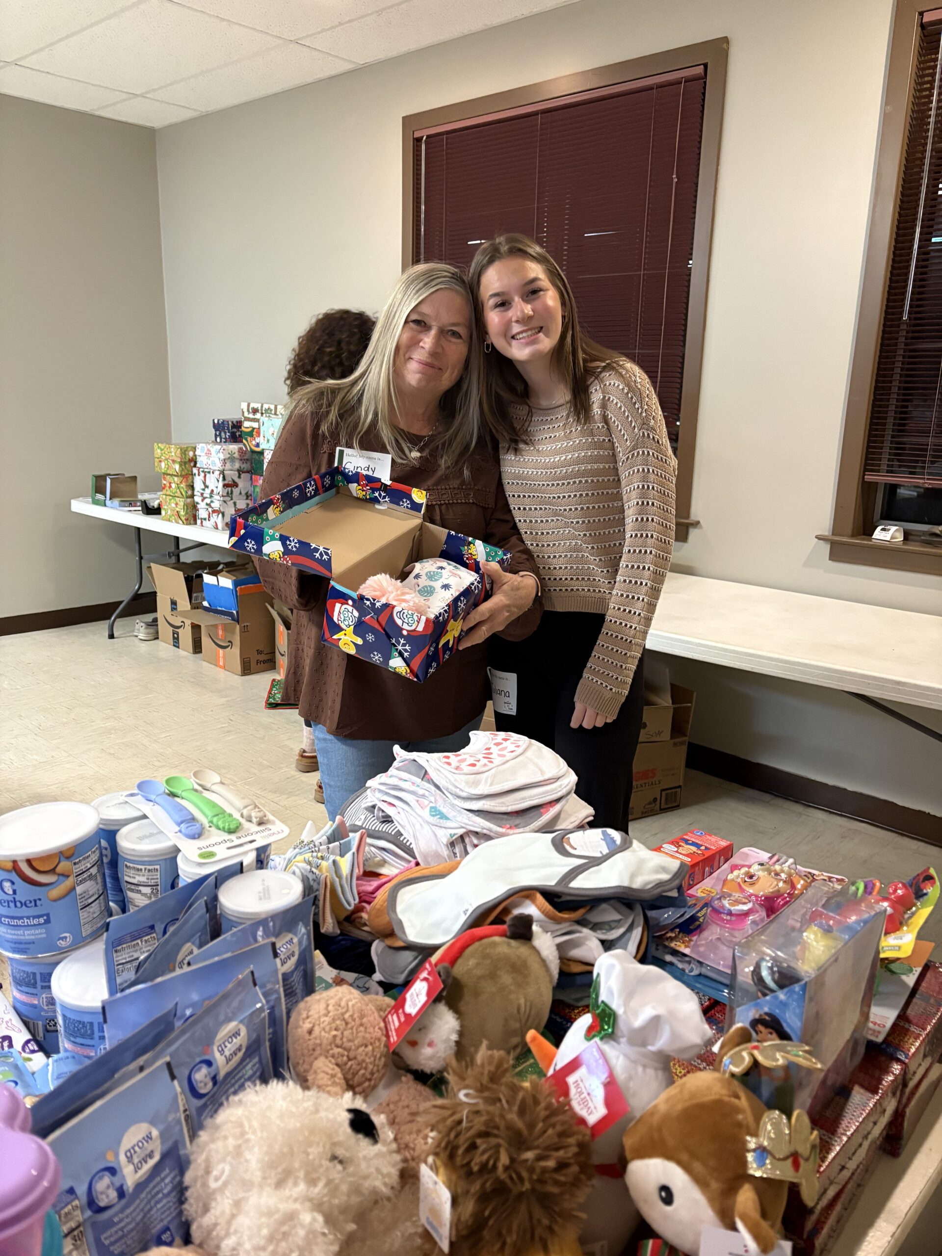 Our fifth annual shoebox packing event on Dec. 11, 2025, was another heartwarming demonstration of how generous and friendly the Invest in You community is. Our volunteers brought abundant donations of goodies, rolled up their sleeves, and wrapped and packed 100 shoeboxes filled with love. Cay Galgon Life House of Bethlehem will distribute them to the families the organization supports. The packages of bibs, hats, mittens, socks, snacks, crayons, toys and more will bring much joy to babies, toddlers and their mamas this Christmas.